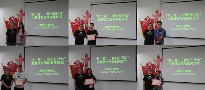 疫情期间,我院为上好大学生返校复学“第一课”,用好抗击疫情的鲜活教材,特举行“抗‘疫’,我们在行动”主题征文活动,并评定出一、二、三等奖各1名、2名、3名,优秀奖若干。为鼓励学生学习,我院在本学期特举办此次表彰大会。
